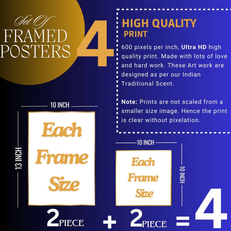 Set of Four Wall Paintings for Wall Dacoration Golden Framed Wall Paintings for Living Room & Bedroom Wall Art for Home Decoration & Office Wall Dรฉcor (13×10 inch CH-GD4-1)