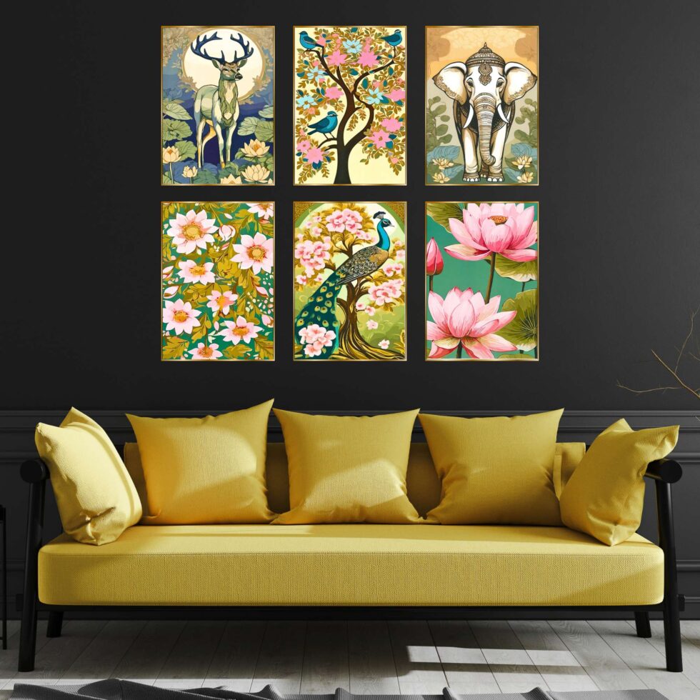 Set of Six Wall Paintings for Wall Dacoration Golden Framed Wall Paintings for Living Room & Bedroom Wall Art for Home Decoration & Office Wall Dรฉcor (17×13 inch CH-GD6-7)
